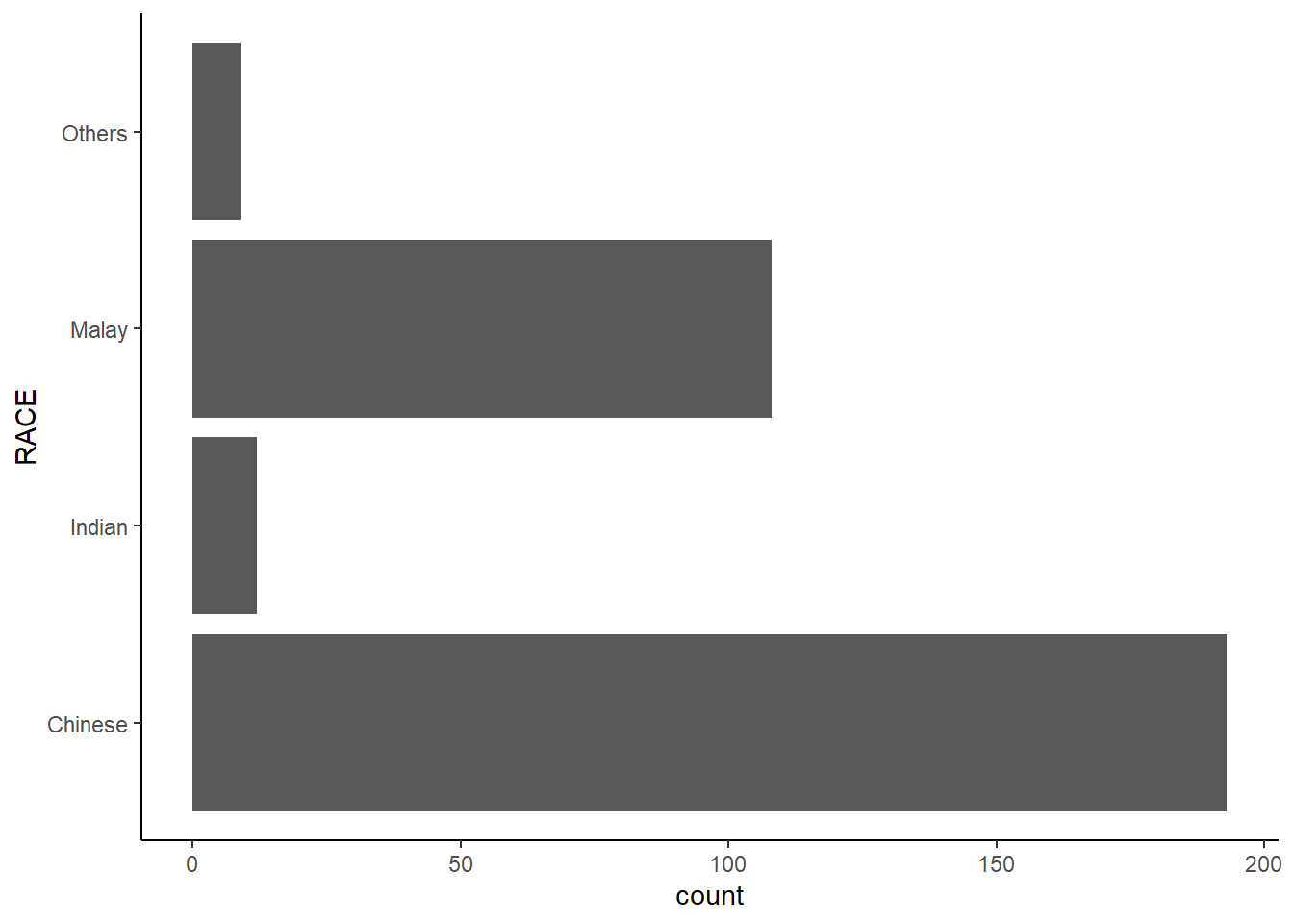 We can flip the horizontal bar chart into vertical bar chart by using coord_flip().