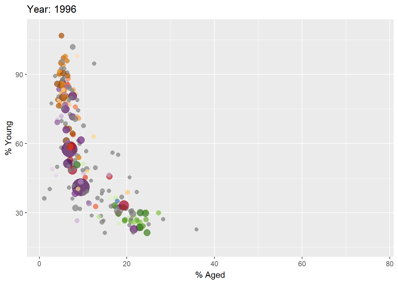 ggplot(globalPop, aes(x = Old, y = Young,