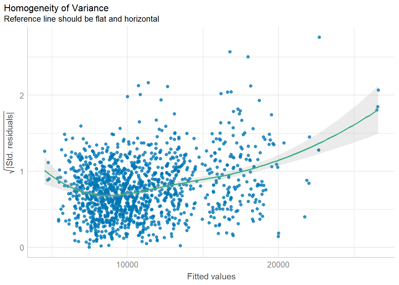 We can use the check_heteroscedasticity() to do this check.