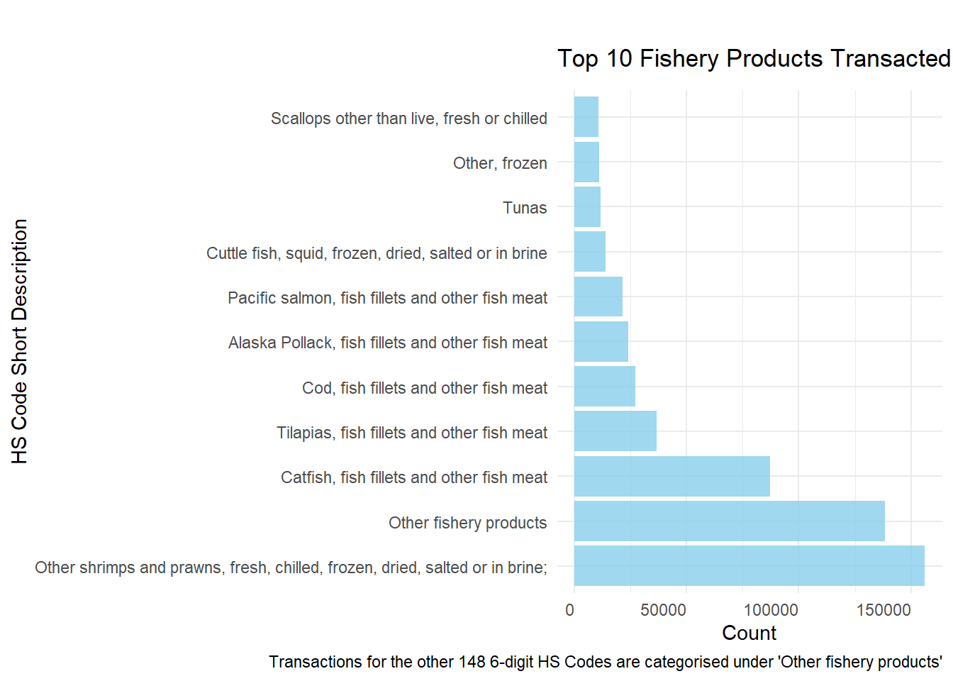 Next, we imported the list of relevant HS codes and the descriptions into our work environment and used the information to extract records related to the fishery products