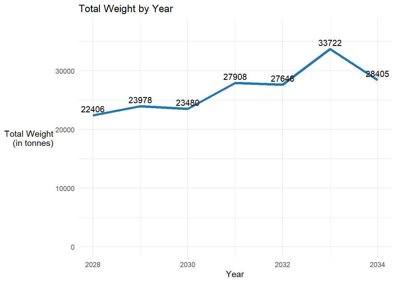 labs(title= paste0(biz,"'s ", 'Sales by Weight (in tonnes)'),